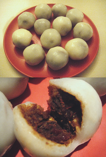 栗を刻んで、一緒に混ぜて、栗入り餡子。
