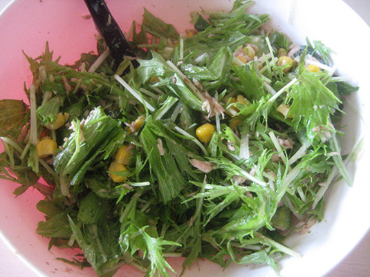 生姜を細切りして、(←おっ、ズボラじゃないじゃないか!)、ゴマ油、胡麻、海苔、