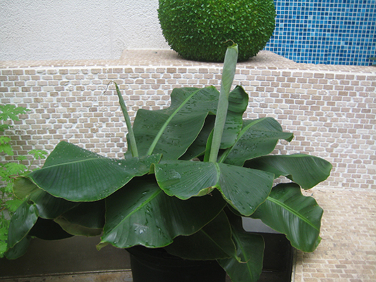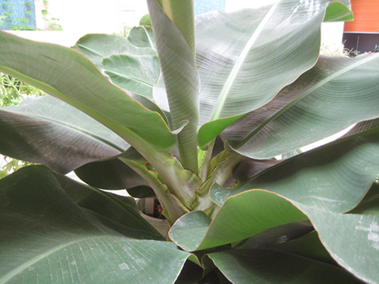わき芽が大きくなったモンキーバナナのほうは、まだまだ小さい。