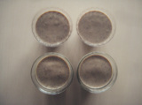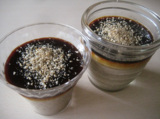 粉寒天で、五香粉入り黒ごま豆乳きなこプリン。
