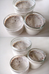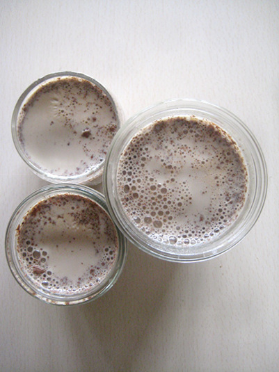 材料加熱して、ココア混ぜるときに泡だった?器に入れた直後だから?
