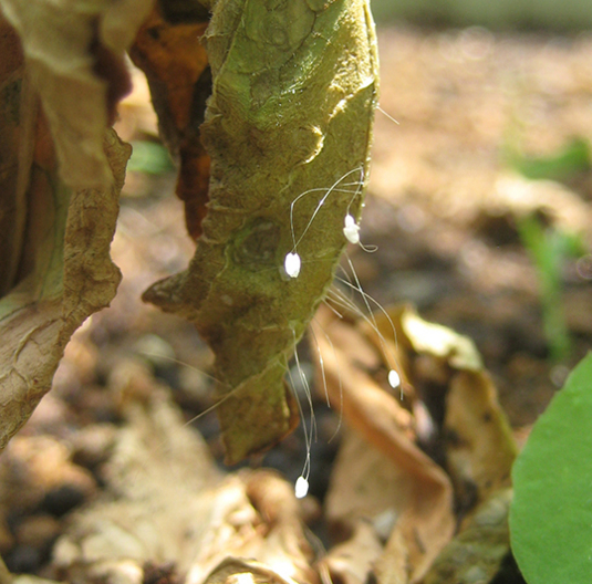 強風のせいか、葉が枯れたせいか、でももう孵化したのかな。