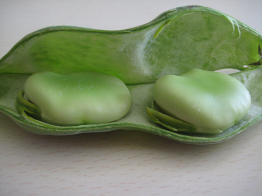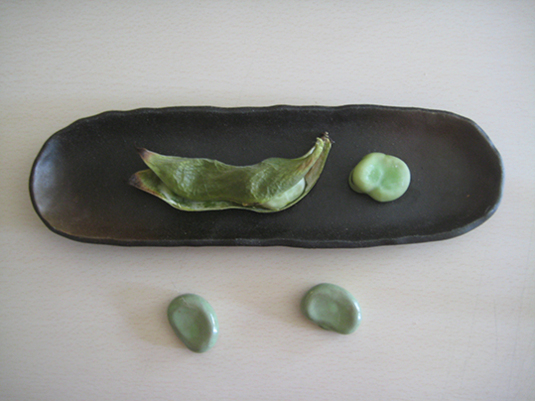 写真下は、空豆の形の箸置きです。