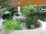 しっかし、モンキー背後のハーブゼラニューム、えんらい背が伸びてきたなあ。
