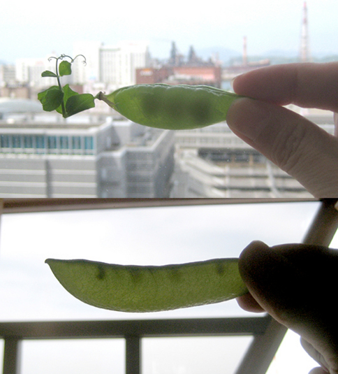 窒素が多くて、実がなるのが遅かったんかなあ。。葉も食べられとぉし。(←エンドウさんと正反対)