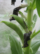 たとえば、並べて置いてる空豆とエンドウも、とまってる虫が、違うんですよねえ。