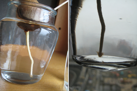 器の底に到達したので、根の先が、矢印のようになっておりました。