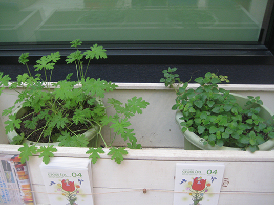 ハーブゼラニウムも緑緑。実は、スタジオ前のハーブゼラニウムの一部は、