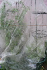強風と野鳥対策も兼ねて、不織布をつけています。