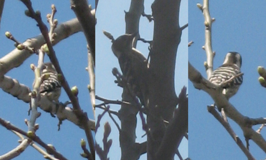 日本一小さいキツツキ。ボーダー柄の羽。鳴き声は写真にはおさめられないものの、