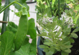 エンドウは実を付け、空豆はオシャレな花が咲いています。