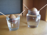 土植えのほかに、水で育てているほうは、なんと、根が、ぴろっと生えてました!