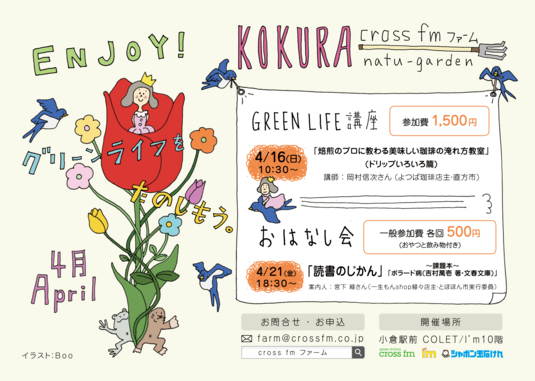 [new!!]4/16(日)cross fmファーム GREEN LIFE講座「焙煎のプロに教わる美味しい珈琲の淹れ方教室」(ドリップいろいろ篇)参加者募集!
