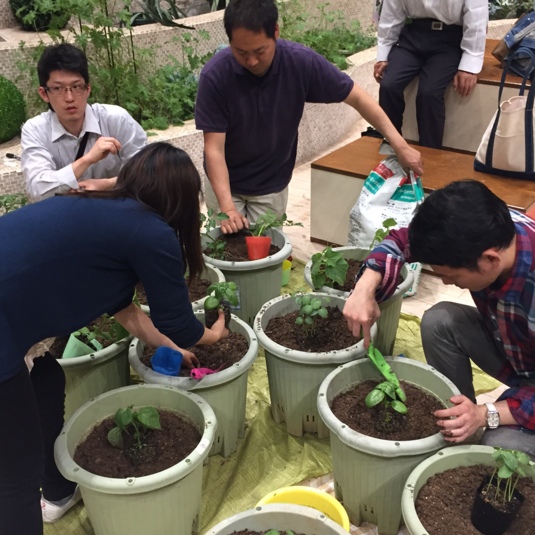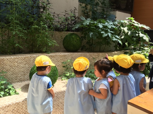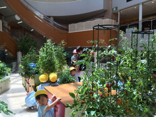 4月に苗植えをしたトマトや青じそ、バジルやインゲンなどの夏野菜の育て方を教えてもらいます♪