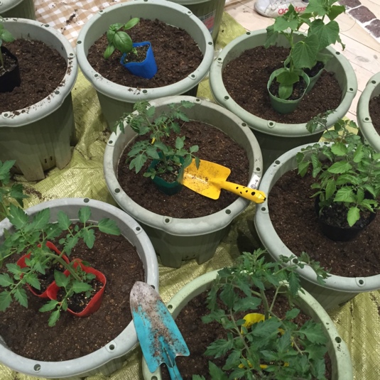 natu-gardenに、ミニトマト・ちびすけきゅうり・バジル・青じそ・オクラの苗を植えました。