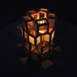 ガラスの中にあかり(今回はLED)を入れて灯すと、つみきの隙間から光が放たれます。