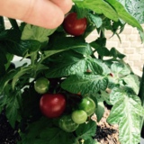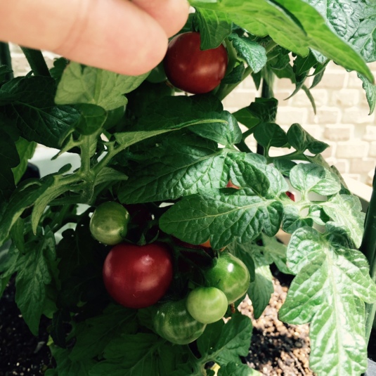 ベランダトマトにも赤い実がつきはじめましたよ~。