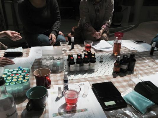 講師の南孝子さんに、アロマオイルを使ったクレンジングオイルづくりを教えてもらいました。