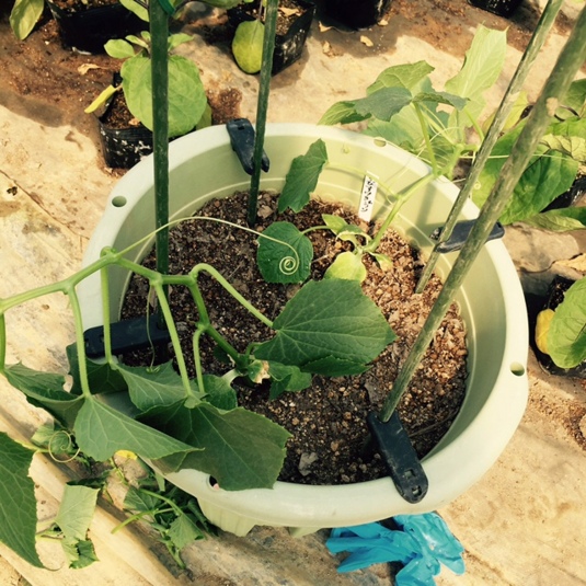 丸オクラ、ゴーヤ、ちびすけきゅうり、ころたんメロン、プリンスメロン、黄瓜、