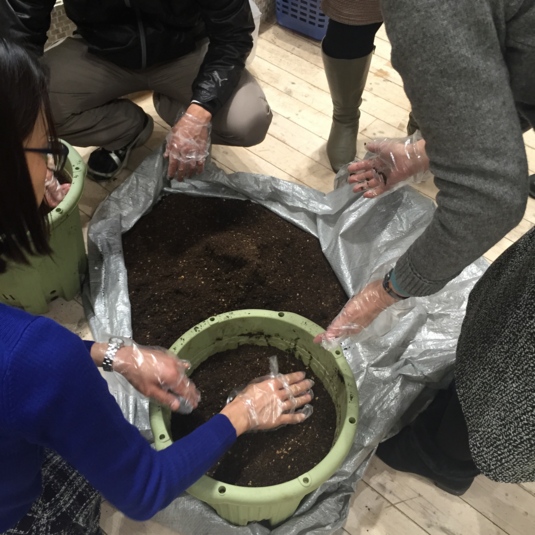 ワークショップでは皆さんと一緒にハーブ苗の植え付けをしました。
