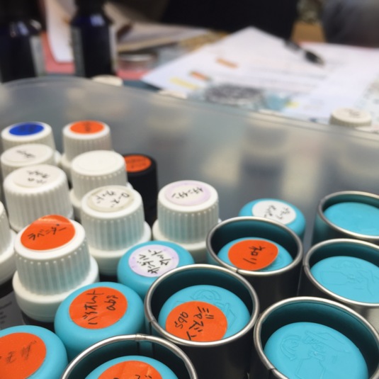 アロマクリーム作りを。たくさんの香りの中から自分のお気に入り選びに悩む女子達♡