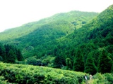 英彦山水系祓川の上流。みやこ町犀川帆柱地区。標高450mの山間に広がる茶畑。