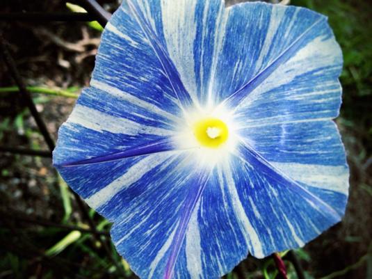 青白絞りが美しい西洋朝顔の「フライングソーサー」です。