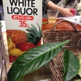 3)刻んだ葉っぱをビン入れて、アルコール(35度のホワイトリカーでOK)を注ぐ。