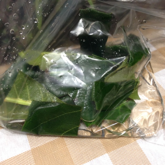 1)びわの葉を洗って汚れをとり、フキンなどで水気をしっかり拭き取る。