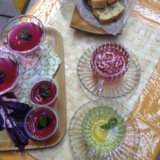 鮮やかなピンク色のゼリーの秘密は…金時草(きんじそう)※1とレモン果汁!