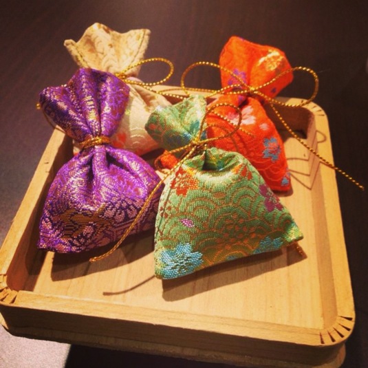 かわいい金襴やちりめんの袋に詰めて…どこにでも持ち運びたくなるような可愛らしさ♪