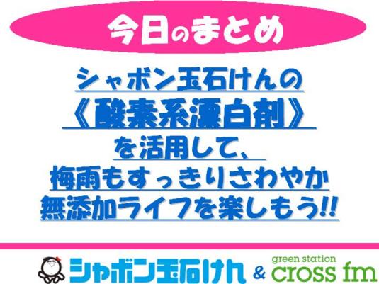 「cross fmファーム」サポート企業「シャボン玉石けん株式会社」から、石けんアドバイザーの前田さんをお迎えして、「シャボン玉石けんを使った 安心・快適な生活の知恵を伝授してもらう」コーナーです♪♪