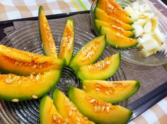 キュウリやスイカ、プリンスメロンも同じく、鳥たちのクチバシの痕が。。