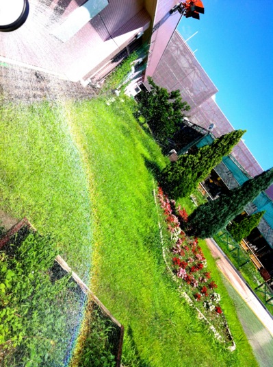 COLET/I'm10階のKOKURA natu-gardenにあるcross fmファーム。天井から差し込む夏の太陽の光を浴びて、夏野菜が元気に育っています♪
