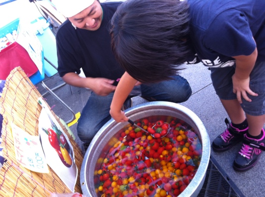 ☆紫川夜市でも大好評だった「トマトすくい」はアドバイザーの (有)上野園芸社 後藤さんのご協力♪ キッズファーマーのまーくんもお手伝いをとても楽しみにしています!