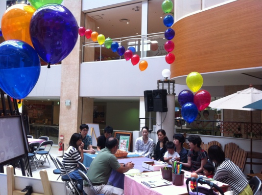 この日のKOKURA natu-gardenは、小学生対象の「わくわく課外授業」のワークショップの設営があり、色とりどりの風船の下での活動となりました♪