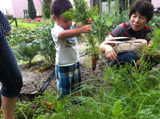 親子3代で参加のゆうくんも、しりもちをつきながら、人参をしっかりとひいていました♪