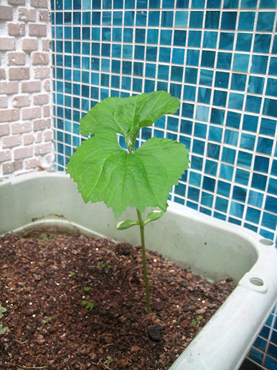 アボカドと同じく、太陽を探して伸び始めたゴーヤ。