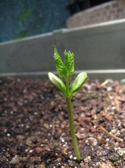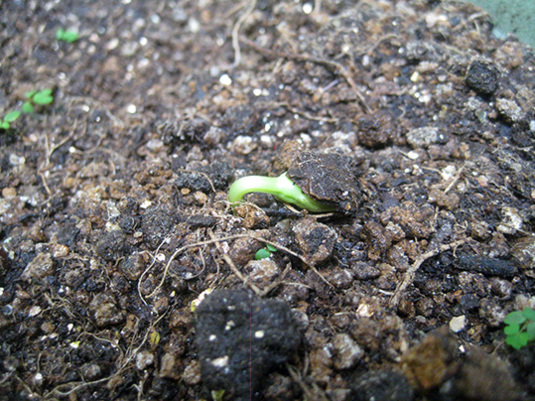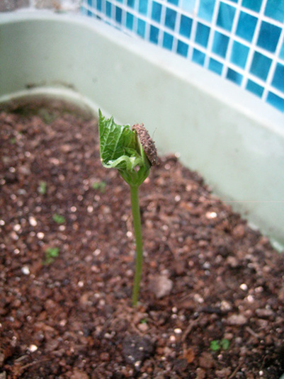 トマトっぽい芽が出て来たねえ。
