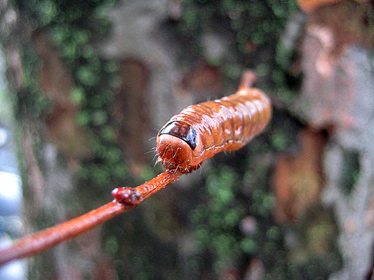 キバラモクメキリガの幼虫デス。