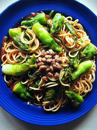 (蕾菜は、漬けてないつぼみ菜を使っています)
