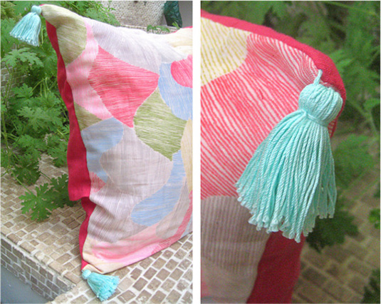 オシャレなタッセル付の、素敵な春色夏色クッションカバーできるもん!でしたなあ