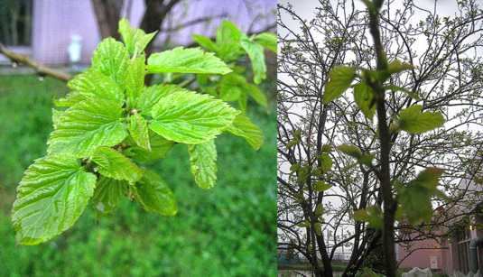 天空では、桑の樹に若葉が着き始めたー♪