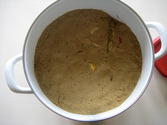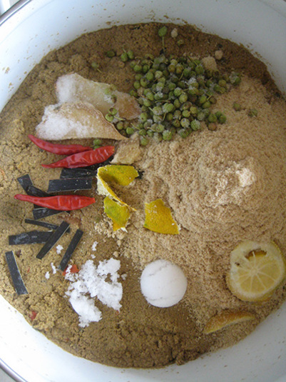 グリーンライフ講座で習ったガラムマサラと、五香粉と。それぞれ漬け。