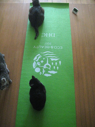 マットを敷く前の収納時ロール状態のモノでペシペシしてみても、その音で集まるw