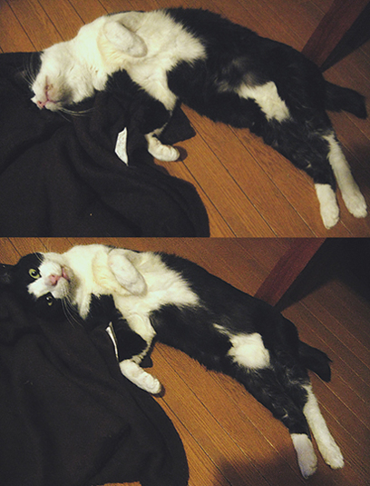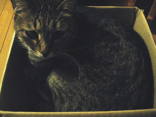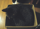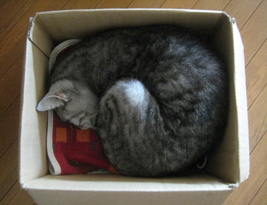 段ボールは、あったかいし、なにやらなにげに懐かしく落ち着くんだろなあ。