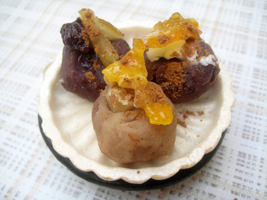 *おはぎ、具材いろいろもなか、創作和菓子2種を作ります