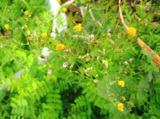 黄色い小さな花たちも咲いている。