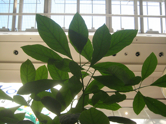 見上げるほどの高さまで生長したアボカド。