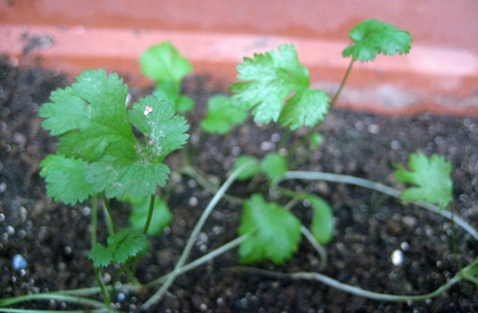 パクチーひっそり育ってますねん。
